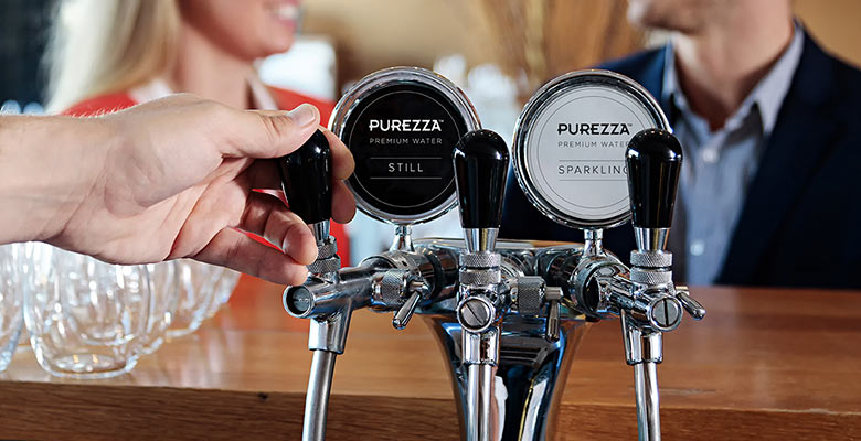 Purezza significantly reduces the cost and eliminates the environmental impact of expensive single-use bottles. With Purezza there is no requirement for the shipping of bottles, delivery trucks, plastic production and waste disposal (no bottles in land-fill).